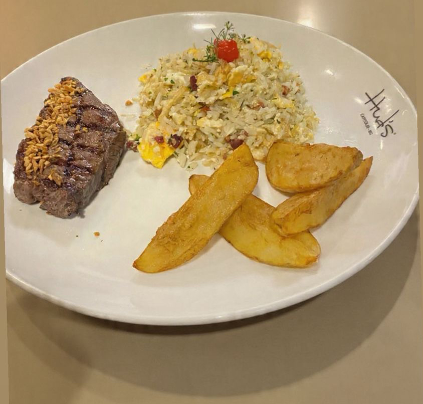 Corte especial de Picanha, finalizado com alho granulado servida com arroz biro-biro e batata palha artesanal da casa.
